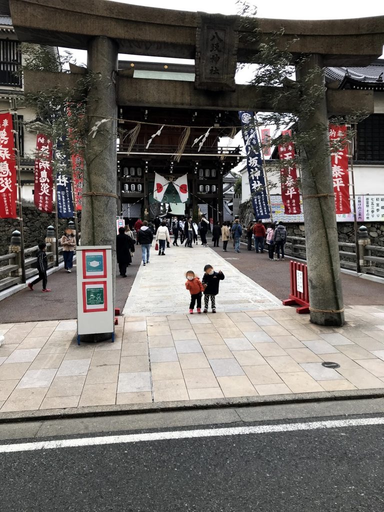 初詣に参りました 2021.01.08 ブログ 今年は小倉の八坂神社に参りました 参拝もソーシャルディスタンスで間隔が設けてあって 密を避けて拝んできました 帰りに梅ヶ枝餅を買って帰りました,おいしかった💛