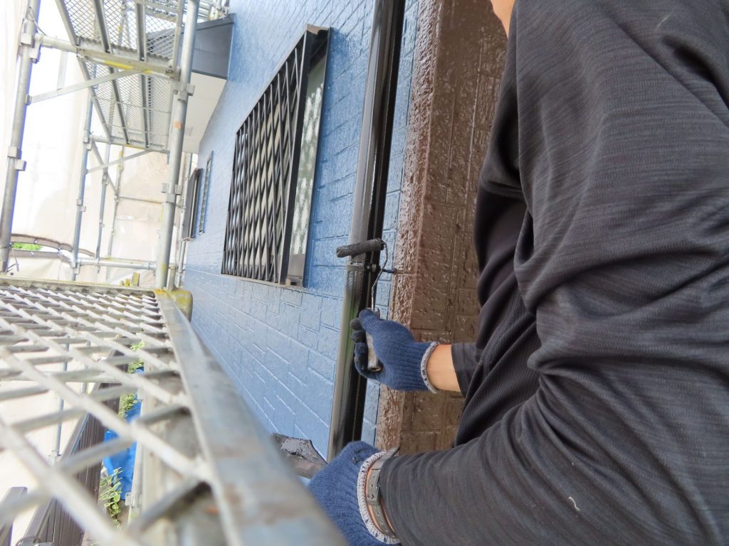 鞍手町にて付帯部塗装を行い、塗装工事完了しました。 2019.06.21 現場ブログ 付帯部塗装 付帯部の塗装を行います。 雨樋、鉄部等、無機塗料で塗装していきます。 手直し、清掃等行い、最終チェック確認後に足場を解体します。 塗装工事完了